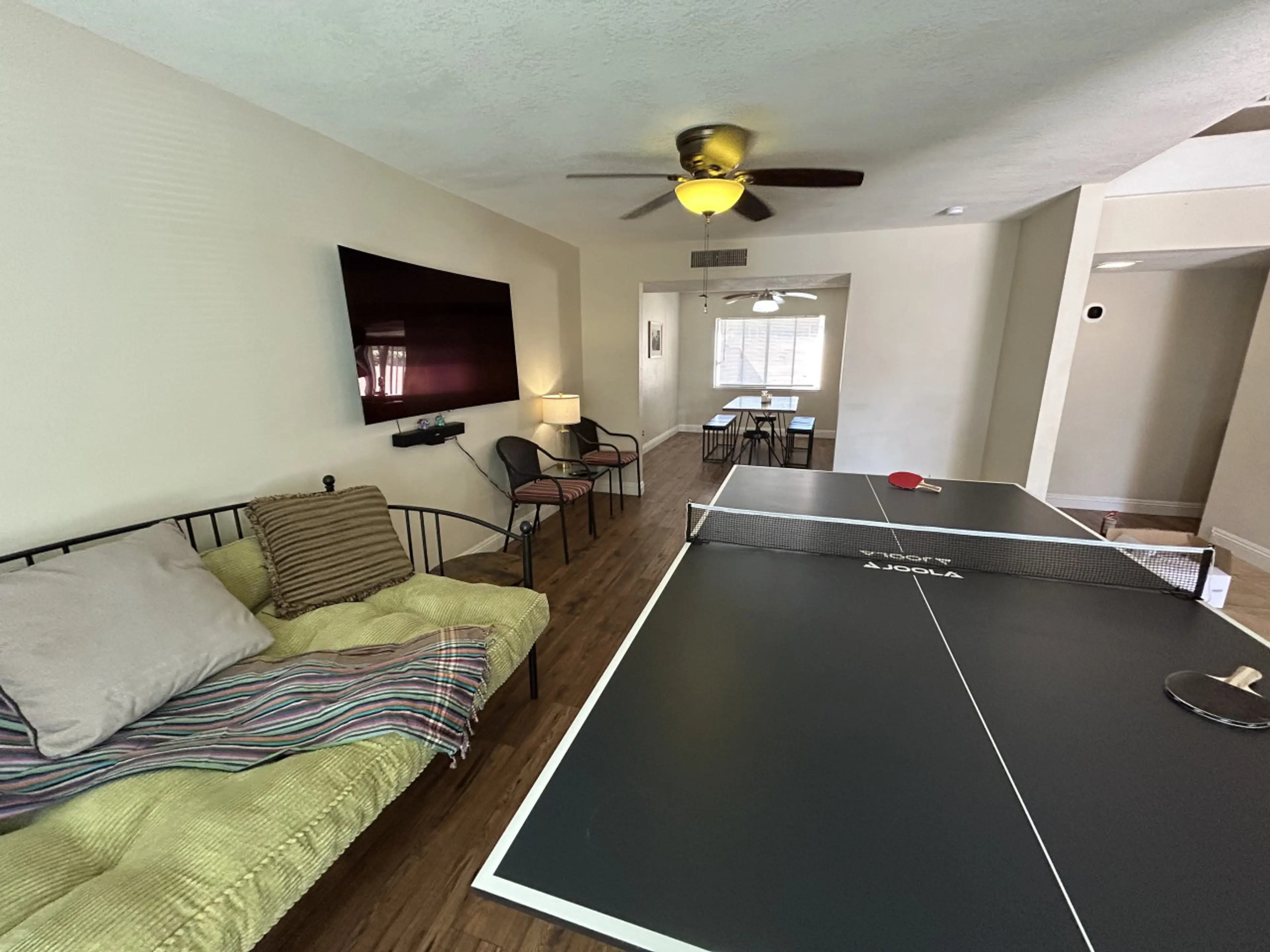This lovely new listing which is a two story home is located in Chinatown, 3miles from convention center and 2.4 from strip in a family neighborhood. Walk to a game room on the left with ping pong pong, foosball and air hockey. Find a fully equipped kitchen that is open to a living room so others c...